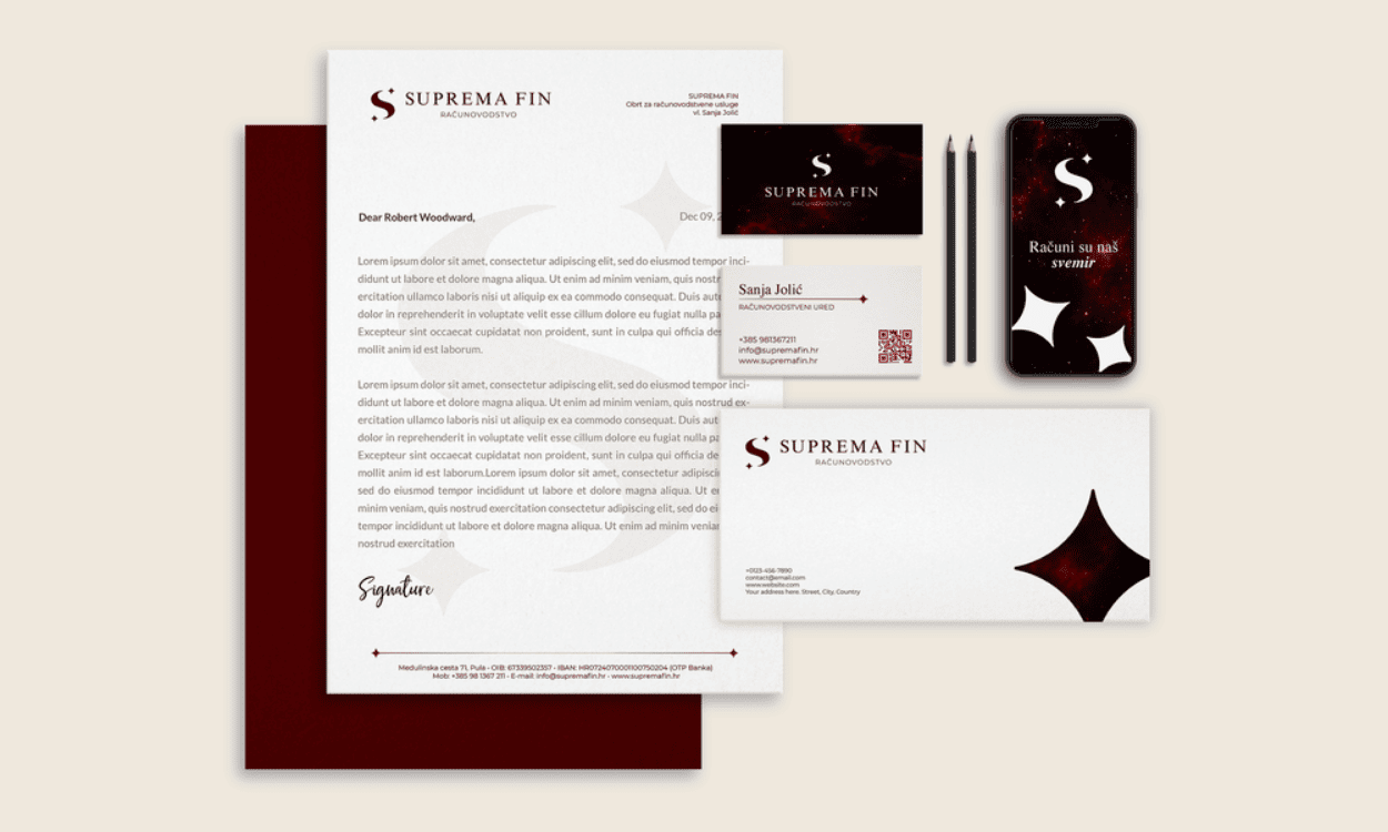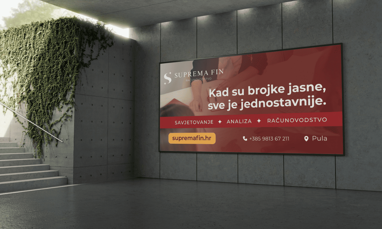 Na kraju, ovaj identitet nije nastao kako bi impresionirao, već da olakša. Da računovodstvo ne djeluje kao nešto hladno i nedodirljivo, nego kao prostor u kojem je sve posloženo, objašnjeno i pod kontrolom. Suprema Fin tako dobiva vizualni jezik koji je miran i siguran, ali i dovoljno topao da se ljudi u njemu prepoznaju i da bez zadrške naprave prvi korak.