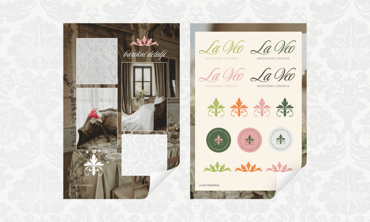 Tipografija: Tipografija za La Veo Weddings odabrana je s idejom elegancije koja nije stroga. Glavni logotipski font je nježan, profinjen i ima izražen karakter, ali ostaje čitljiv i u manjim formatima. Za web i popratne materijale korištena je čista, mirna tipografija koja donosi ravnotežu te omogućuje jasno čitanje sadržaja i daje strukturu cijelom brendu.